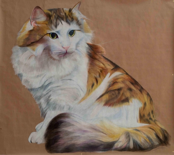 José Luis Loría, un brujo del dibujo científico nos trae la obra ¨La Cofradía de los Ojos ¨, consistente en cientos de dibujos sobre el felino, el “Felix Silvestris”. El uso de lápices de color es único en su estilo y obra, en el sentido que generalmente se utilizan carboncillos negros y/o acuarelas. Las técnicas para lograr los diferentes tonos representan, por sí mismas, un tour de force muy difícilmente igualable. En efecto, Loría utiliza unos 140 lápices de colores distintos, de los cuales cada uno puede rendir 4 ó 5 tonos distintos, el artista habrá extendido su paleta a un abanico de unas 650-700 tonalidades, salvaguardando transparencia y evitando efectos opacos o cargados. Si por fuera poco, hay que subrayar también que la técnica del lápiz no tolera ningún error, ya que es simplemente imposible corregir, menos aún borrar, un tono ¨incorrecto¨.