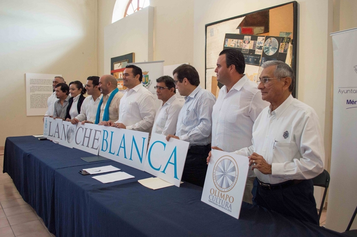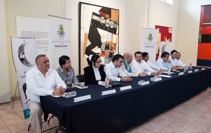 El encuentro con los medios de comunicación fue presidido por autoridades del Ayuntamiento de Mérida, encabezadas por el Lic. Renán Barrera Concha, Presidente Municipal de Mérida; Lic. Elías Lixa Abimerhi, Regidor Presidente de la Comisión de Cultura; Antropólogo Irving Berlín Villafaña, Director de Cultura; Lic. Tommy Gaspar Soberanis Valdez, Director de Turismo; y la Arq. Rossana Marrufo, Directora Operativa del Museo Fernando García Ponce.